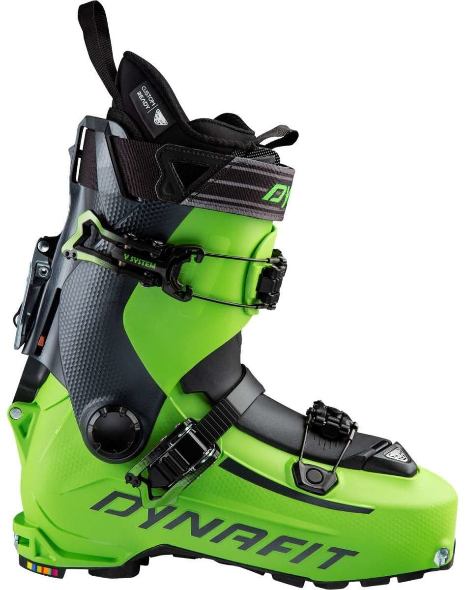 A new member of the HOJI Family: HOJI PU. Just like the HOJI PRO TOUR, the HOJI PU boasts not only the Dynafit-patented Speed Nose and Master Step inserts, but also a 3-buckle system. The significant difference is in the closure system: The HOJI PU does not come with the patented HOJI LOCK System, but with what we call the HOJI Single Lock System. That means the strap is not connected to the rear lever and thus must be latched separately to switch to downhill mode. An additional difference is in the materials: The HOJI PU is approximately 100g heavier than the HOJI PRO TOUR and has a slightly lower flex of 110. The last width is 103.5mm. The HOJI PU is compatible with the Cramp-in crampons.
